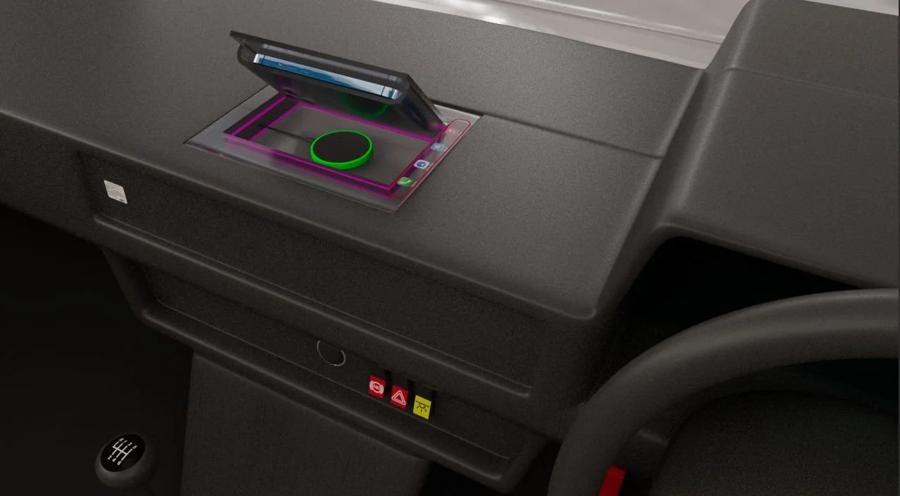The SmartSafe Tray enhances both safety and convenience on the road. With a quick double press, it opens to reveal a cassette-style compartment. When a smartphone is placed on the built-in wireless charger inside the closed cassette player, the vehicle can start—ensuring the device is securely stored before driving. The tray, or cassette player, is acoustically sealed, silencing all incoming notifications to minimize distractions. It also supports Apple CarPlay, providing seamless access to navigation, calls, and music directly through the infotainment system without handling the phone. A tinted cover discreetly conceals the device, further reducing visual distractions. The SmartSafe Tray is a breakthrough innovation meticulously engineered to eliminate distracted driving once and for all.