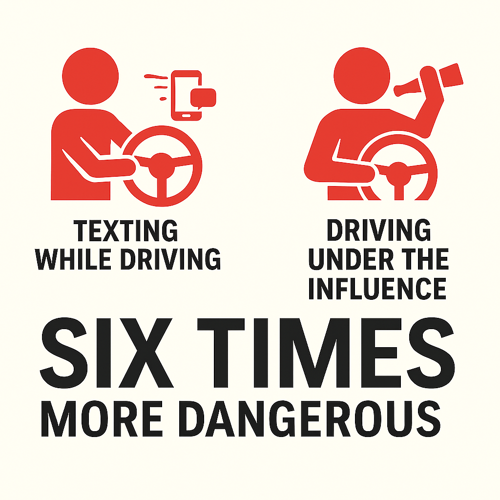 Texting while driving is six times more dangerous than driving under the influence of alcohol. This alarming fact highlights how even a quick glance at your phone dramatically increases your risk on the road. Unlike intoxication, which impairs reflexes, texting takes your eyes, hands, and focus off driving—all at once. It's a silent threat that feels harmless but can be far deadlier than most realize.